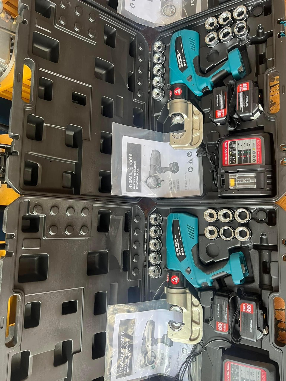 • Bộ Máy ép cos thủy lực chạy Pin ZUPPER EZ-400 với 2 quả Pin thuận tiện thay thế khi thi công.